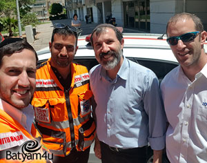 בתמונה: יהודה מזרחי ראש סניף בת ים, אבי מרכוס פרמדיק ראשי באיחוד הצלה, אריאל בן דוד רכז מתנדבים ארצי איחוד הצלה, וברוך שחר מתנדב בסניף בת ים.